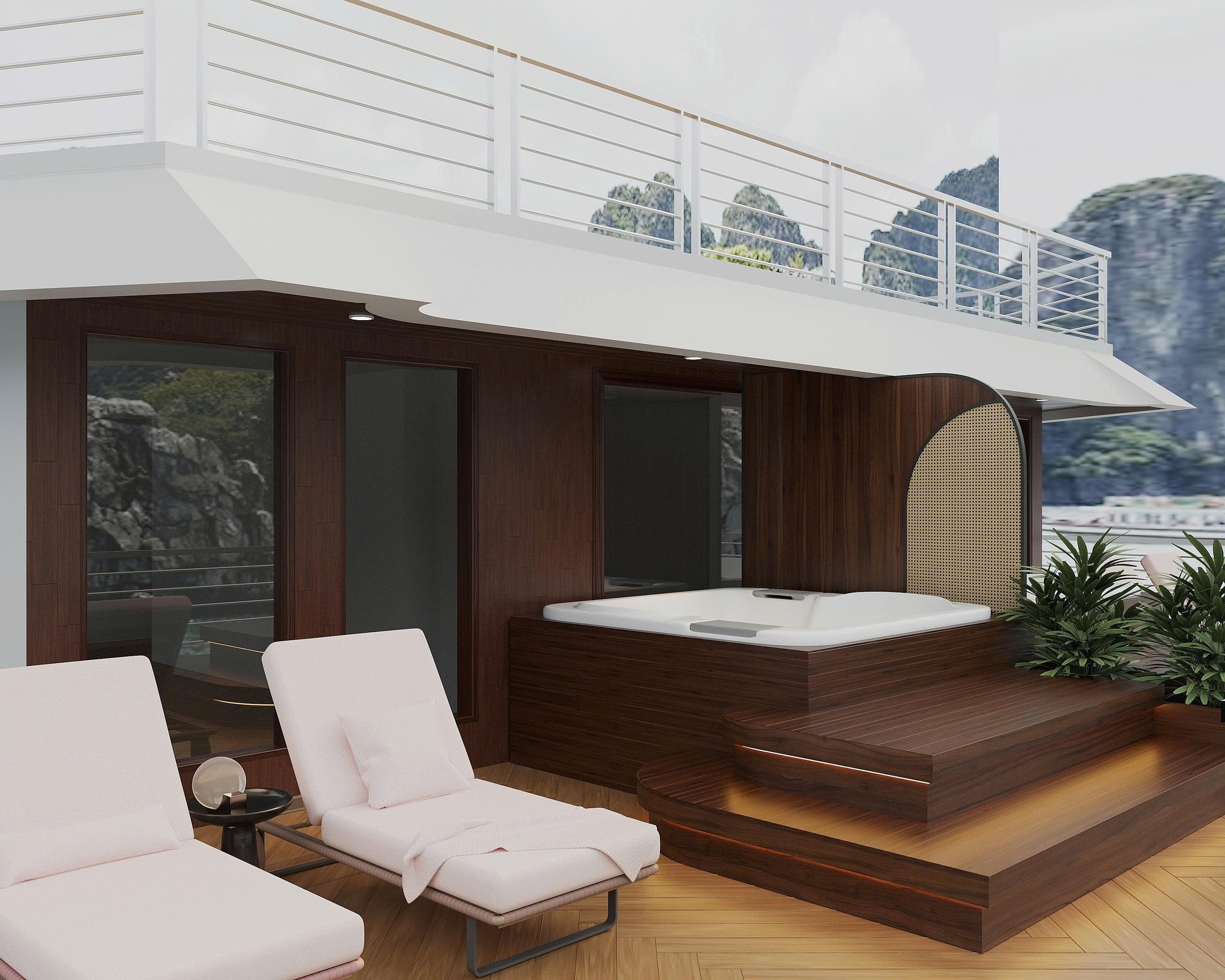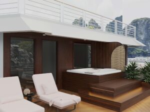 - Full amenities cabin with private balcony & private bathtub