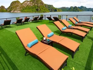 Embark on a remarkable journey through Lan Ha Bay aboard the luxurious Peony 5-star cruise – a true gem nestled in the heart of the bay. With its sophisticated design that beautifully blends modern luxury with traditional charm, Peony promises an extraordinary travel experience. Enjoy spacious rooms with private balconies offering stunning sea views, savor gourmet dining with a blend of Asian and European flavors, and take part in thrilling activities like swimming, kayaking, and exploring hidden caves. Every detail aboard Peony is crafted to ensure your utmost comfort. Set sail with Peony and treat yourself to an unforgettable escape amidst the stunning emerald waters of Lan Ha Bay.